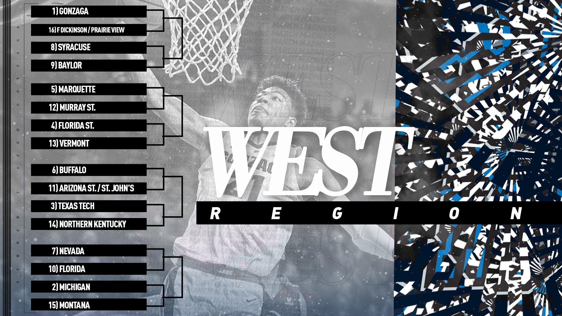 Ρίχνοντας μια πρώτη ματιά στο bracket της West Region, αυτό που κάνει εντύπωση είναι το υψηλό για όλους #2 seed του Michigan -για το οποίο θα αναφερθούμε αναλυτικότερα-, καθώς και το πόσο δύσκολο φαντάζει για μια μικρή ομάδα να περάσει κάποιους γύρους στο συγκεκριμένο και να φτάσει μακριά.